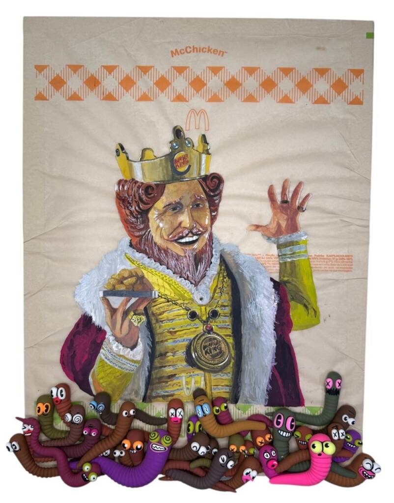 Descritivo: Guache sobre papel de enrolar hamburguer do Mc Donald’s e polímeros.